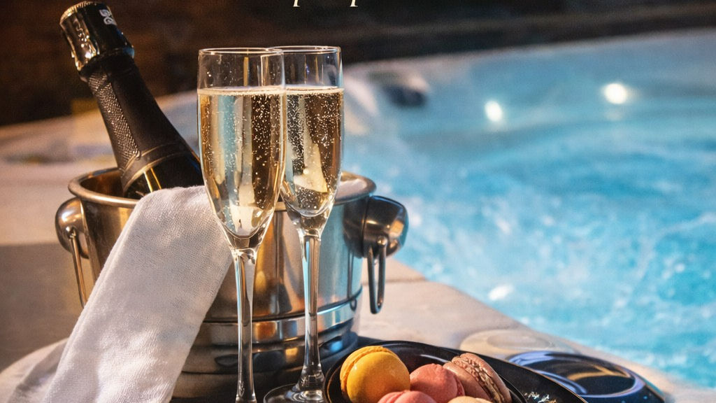 Winter or summer, savor the fresh bubbles of champagne in the hot bubbles of the Spa.
